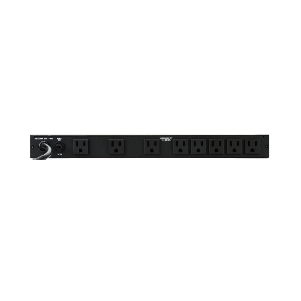Instale un M-8x2 en la ranura superior de su rack, y las ocho tomas de corriente conmutadas en el panel trasero se encenderán y protegerán todos sus equipos hasta una carga de 15 amperios.