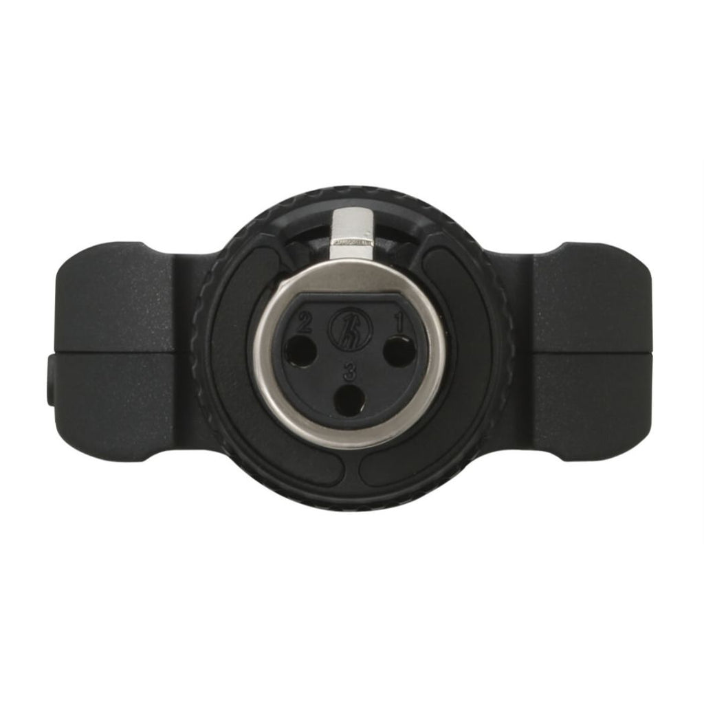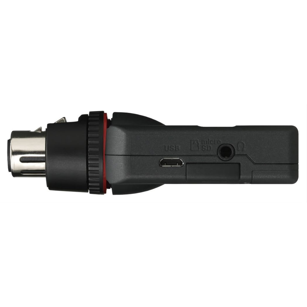 Un conector XLR cautivo se conecta firmemente a su micrófono, capturando entrevistas a una resolución de 48kHz / 24-bit Broadcast WAV.