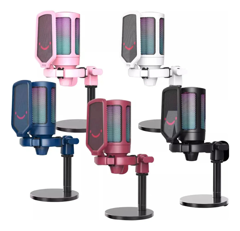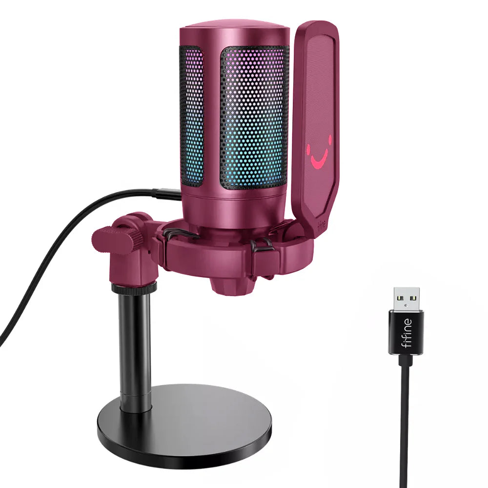 Micrófono de condensador con luz RGB, con stand para mesa que permite grabar cómodamente en un escritorio, con popfilter para una mejor calidad de audio. Ideal para transmisiones en vivo, juegos de vídeo y grabar podcasts o cualquier otro tipo de grabación digital.