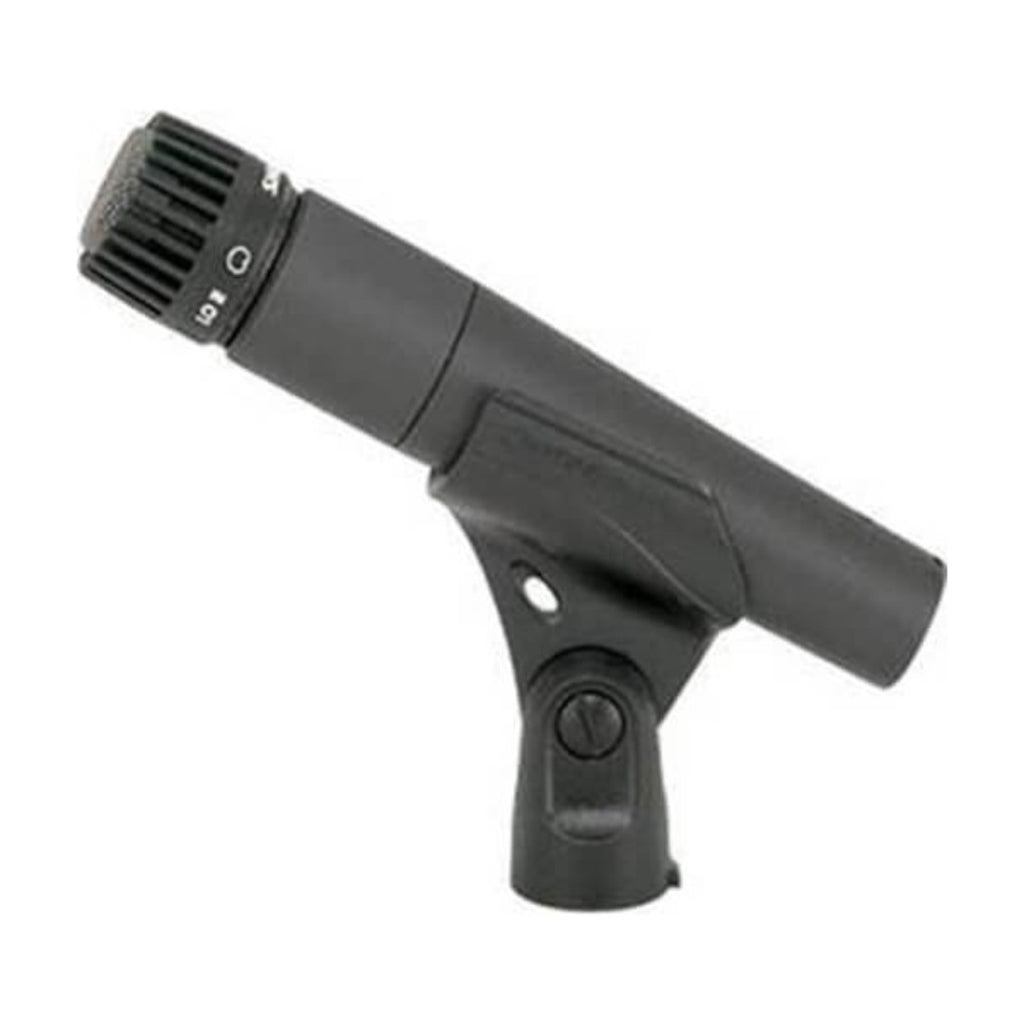 Micrófono profesional multiusos, dinámico, unidireccional, alta sensibilidad, baja impedancia; sin switch. Específicamente diseñado para instrumentos musicales o bafles de guitarra.