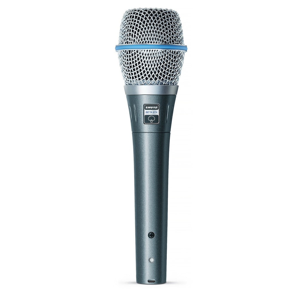 El patrón supercardioide estrecho, con puntos nulos a aproximadamente 125º, proporciona un aislamiento máximo de otras voces o instrumentos y a la vez ofrece una coloración mínima fuera del eje principal. El modelo Beta 87A funciona con alimentación Phantom.
